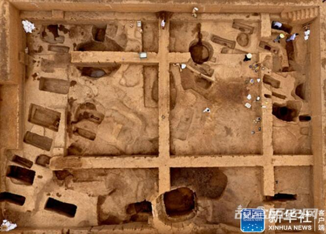 这是在河南省安阳市洹北商城发现的商代铸铜工匠家族墓地(6月5日无人机拍摄)。新华社记者 李安 摄