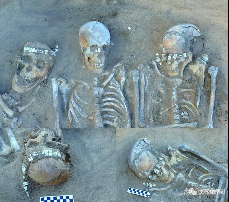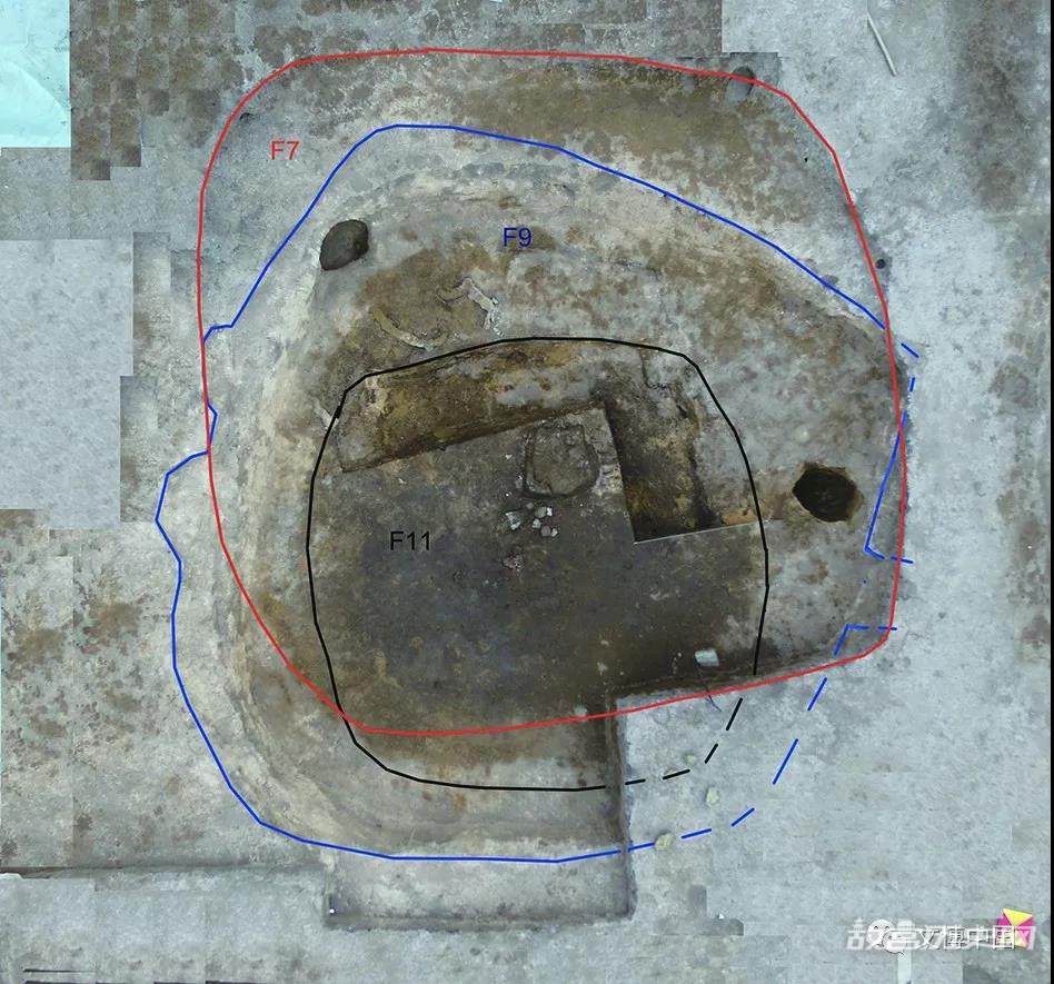 M3位于F3西北角,打破底部活动面,为居室葬。墓主为三人合葬,均为仰身直肢。西侧为较年长男性,中部为较年轻的成年男性,东侧为较年长的女性。三人均佩戴环绕头部一周的玉串饰,此外还随葬穿孔贝壳等遗物。F3底面原有4个叠压在M3之上及周边的灰烬浅坑,其中浮选出碳化黍粒数百颗。M3测年与F3底面基本同时,F3的祭祀行为应与M3的埋葬有关。