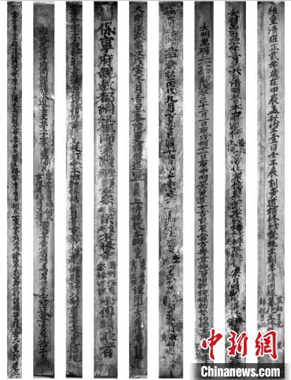 花林寺大殿中各个时期墨书题记的红外照片。图片来自成都文物考古研究院