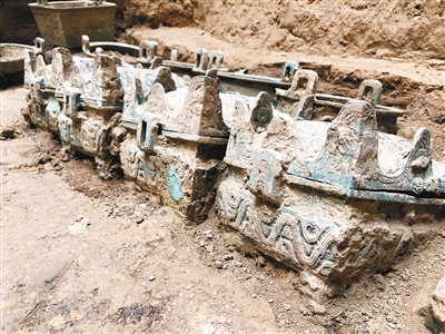 值得关注的是,此次出土的4个簋均为山形簋,与以往发现的青铜簋外形都不同,这种簋也是首次出现在关中地区。种建荣说:“这种形制的簋以往曾在山西地区发现过,关中地区尚未出现过这种形制的簋,这说明墓主人或者芮国在当时可能也与晋人有关。”这4件罕见的山形簋为神秘的古芮国又增添了一丝神秘的色彩。