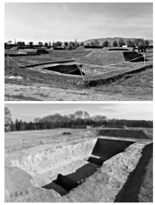 该墓群占地125亩,北距朔州老城7公里,南距新城遗址(梵王寺)10公里。四周已经被铁丝网围起,有安保人员在四周巡逻。山西省考古研究所工作人员正在朔州市、朔城区文物局工作人员的配合下,对发现的古墓葬进行清理。山西省考古研究所高振华告诉山西晚报记者,今年10月,经过前期的论证准备,并经国家文物局批准,省考古所进驻场地开始发掘工作,“到今天已经发掘墓葬20座,墓葬年代有战国、西汉、东汉、北魏等。已经出土了为数不多的陶器、漆器等陪葬品。”