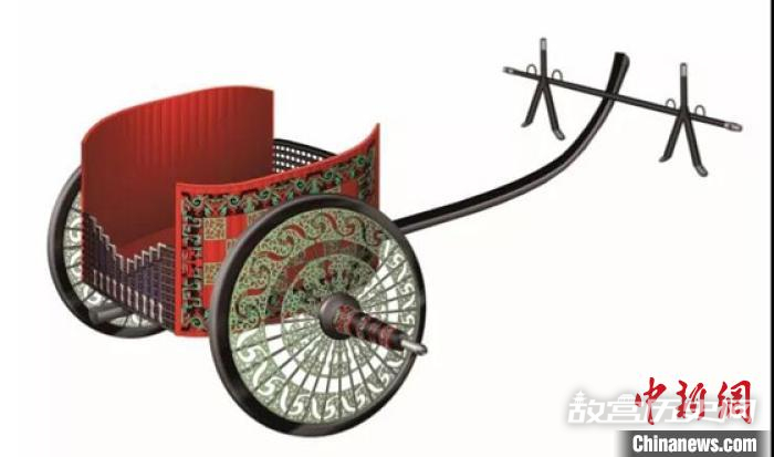 图为马家塬墓地设计考究、工艺复杂的随葬车辆复原图。图片来自甘肃省文物考古研究所