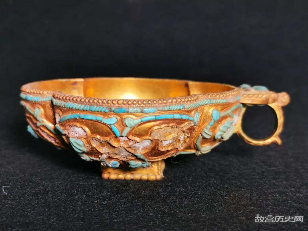暗格内木箱放置的一件珍珠冕旒龙凤狮纹鎏金王冠和一件镶嵌绿松石四曲鋬指金杯,显示墓主人很可能与吐蕃时期当地王室有密切关系。