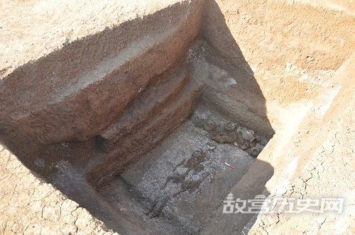 2、南区:墓葬9座,分布在山体的西北面低处。依墓葬方向的不同,可分为两类。A类,东北-西南向,墓葬位于山体底部的冲沟处,有M52-M55、M78。墓葬体量偏小,墓内出少量日用陶器或空无一物,显示墓主身份等级很低。B类,西北-东南向,墓葬方向与自然地势垂直,如M50、M51、M56、M68,墓葬体量中等,每墓出1-2套陶礼器,显示墓主具备一定的身份。南区南部因地方政府征地拆迁原因暂未发掘。