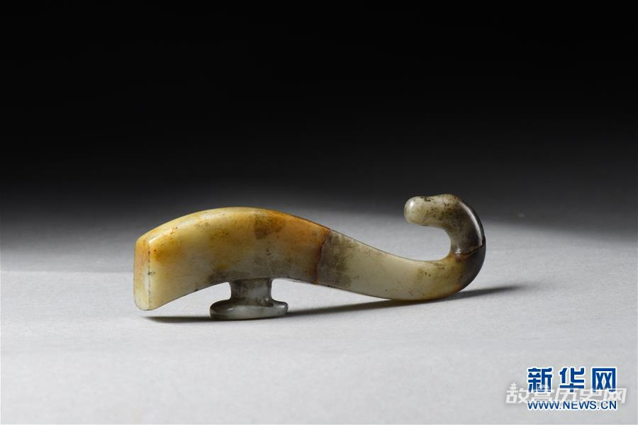 这是2019年7月30日拍摄的出土的玉带钩的资料照片。图片来自河南省文物考古研究院