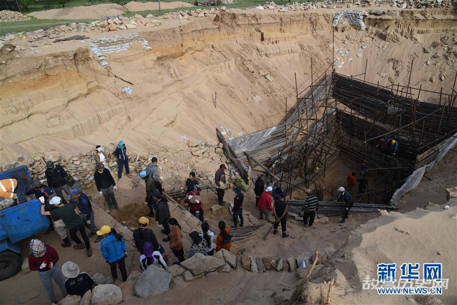 这张拍摄于2019年6月13日的资料照片显示,中蒙联合考古队队员在位于蒙古国后杭爱省的发掘现场工作。图片来自河南省文物考古研究院