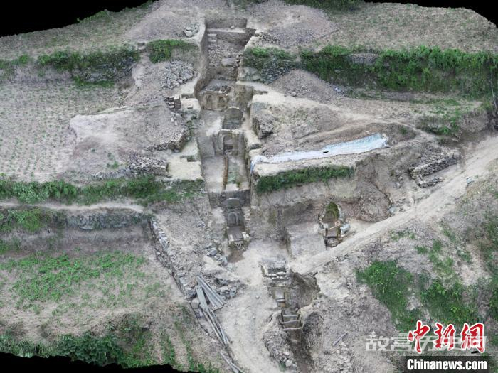 陕西省考古研究院助理研究员李坤介绍,发掘共清理古代墓葬5座,均为砖室墓,四座为单室砖室墓,一座为双室砖室墓。这批墓葬应为家族墓葬,墓葬形制接近,排列有序,沿坡地由下至上整齐排列,同平面墓葬形制及砖雕基本类似,不同平面则略有差别。这批墓葬在墓室前均有排水沟,部分墓葬的排水沟按照墓葬位置由不同方向布设以避开其它墓葬,说明这批墓葬应该为统一修建。墓葬砖雕较为精美,为仿木结构砖雕墓室,墓室四壁有夫妻对坐、武士、桌椅、茶具、动物、花卉、门窗等形象。