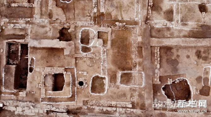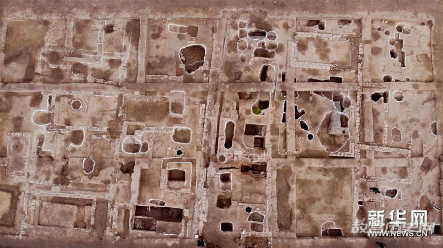 这是12月23日无人机拍摄的濉溪明清时期酿酒作坊遗址。记者从安徽省文物考古研究所获悉,近期在濉溪县发现一处明清时期酿酒作坊遗址,发掘面积3000平方米。 该作坊遗址位于濉溪县城关镇北关的沱河路北侧,去年在工程施工时意外被发现。截至目前,在遗址内发现了比较完备的蒸馏酒酿酒设备系统。新华社发(黄博涵摄)