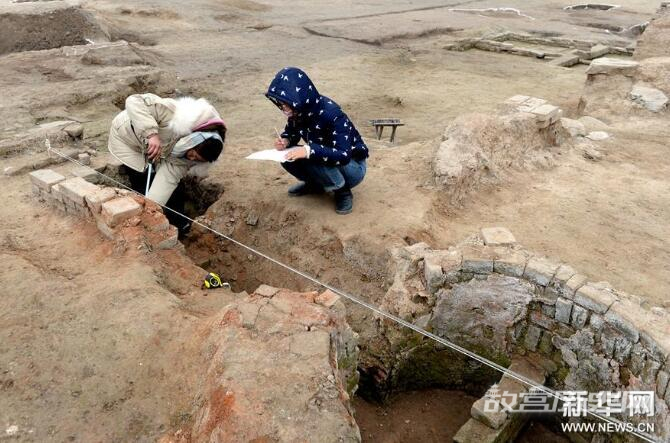 12月23日,在濉溪明清时期酿酒作坊遗址考古发掘现场,考古人员在进行测量绘图。新华社发(黄博涵摄)