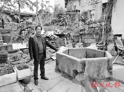 古井发现者陈霞生与古井合影。