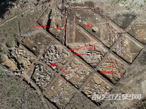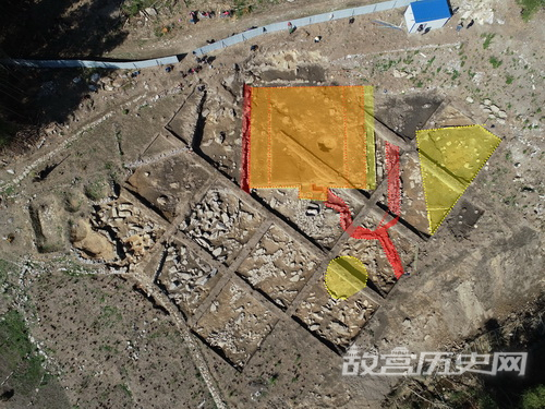 本次发掘共布10米×10米探方21个,扩方面积640平方米,而发掘区北部的石挡墙遗存落差大,未布探方发掘,面积约1200平方米,总发掘面积近4000平方米,发现了宋元明时期的寺庙遗址、清初山寨遗存和晚清民国时期的造纸遗迹(图一)。