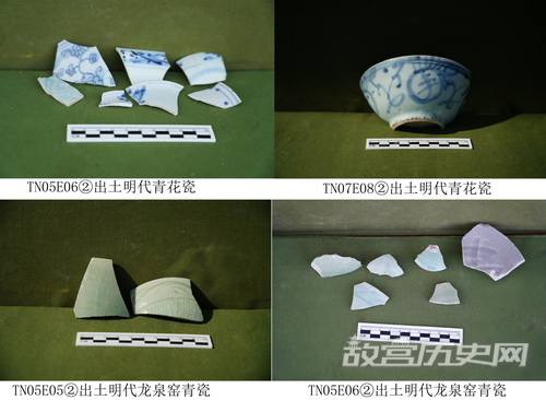 明代建筑基址及地层中出土了较多的青花瓷,有相当数量来自于景德镇民窑,见有“大明成化年制”、“博古斋”、“百香斋”等款识。