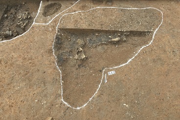再从这一时期该地清理的遗迹来看,大量的瓮棺(釜)分布在岛上的东北角和东部),成排、成列的规模较大的柱洞分布在岛上的西南角),似对称分布?在这两组主要遗迹现象的中间,分别分布有整头牛(西北部)、猛犬(东南部)祭祀坑、正中则分布三个竖穴土坑墓穴,穴内分别葬有三具人骨,仰身直肢,均为青年男女(无任何随葬品,20-30岁),三座墓葬没有任何随葬品,与其他墓地的墓葬的区别是明显的。这让我们不能不考虑该遗址的特殊性。分布在台地的东北角和东部的瓮棺,从层位关系来看,至少分为不同的时期,即该瓮棺群应该不是短期形成的。
