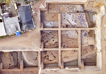 2018年10月至2019年4月,我所联合晋宁区文物管理所对河泊所村东的地块进行了发掘,主要在勘探中发现的台地3和河道4开展工作。发掘面积共1800平方米,揭露出22块田块、24条道路(田埂)、4座水井、1座窑址、84条沟、228座灰坑、12座土坑竖穴墓、19座房屋以及200余座婴幼儿瓮棺葬。