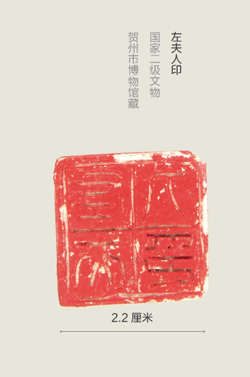 左夫人印,出土于八步区铺门镇河东村金钟一号汉墓,为国家二级文物,现珍藏于贺州市博物馆。