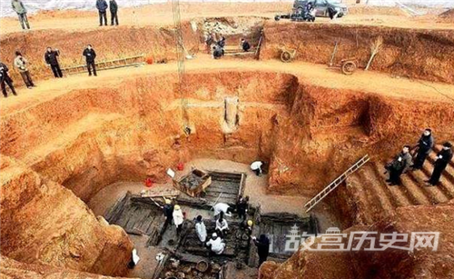 讲到这里要特别提一下,长期以来,考古学界发现的墓葬,都极少有完全没被盗过的。盗墓一行由来已久,盗墓者往往在探测好墓穴所在地后,就会用专用工具向下挖掘盗洞,盗洞外方内圆,一直到底,有盗墓者出现的墓葬,往往损毁是最严重的。