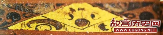 在海昏侯墓内棺北侧,也就是刘贺遗体的头部位置前方,出土了一件黑色贴金片漆盒,虽然已经被压变形,成为一堆残片,但闪亮的金箔贴片描绘着清晰可见的各种人物和动物(图1),引人注目的是上下边缘有两排三角形纹饰,从照片上可以看见8个三角形,每个三角形内都有不完全对称的神秘的几何形组合符号(图2)。相邻三角形内的组合符号排列基本相似却略有不同。