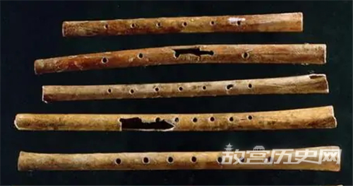 贾湖骨笛,距今约8000年,不仅远远早于美索不达米亚的乌尔古墓出土的笛子,也比古埃及第一王朝时期陶制器皿状笛子和在化妆版上刻画的类似后世阿拉伯竹笛的笛子形象早。比古埃及出现的笛子要早2000年,被称为我国笛子的鼻祖。从约九千年前的河南贾湖遗址中出土的一批精致骨笛,最近被专家认定为世界上最早的吹奏乐器。分属于贾湖早中晚三期的二十多支五孔、六孔、七孔和八孔骨笛,经专家研究已具备了四声、五声、六声和七声音阶,把中国七声音阶的历史提前到八千年前。