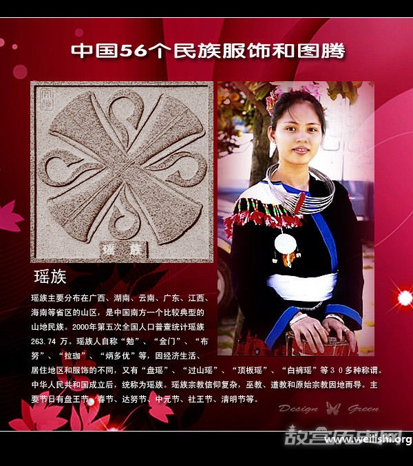 瑶族是亚洲的一个民族,其历史比较悠久。中国的瑶族人口为2,637,421(2000年).