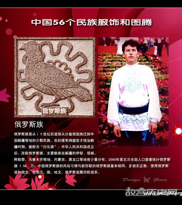 在我国俄罗斯族是56个民圌族之一,在新圌疆北部、内蒙古和黑龙江省共有约1.56万俄罗斯族人。