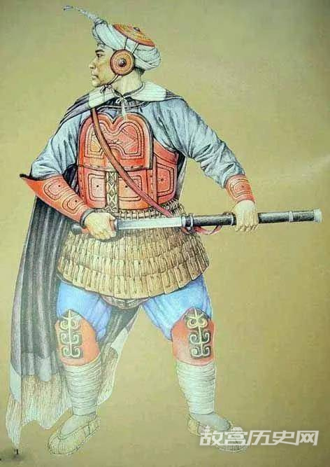 典型的彝族武士形象,头裹头巾,单兵作战能力优良;后世的广西狼兵也很大程度上有彝族武士的影子在
