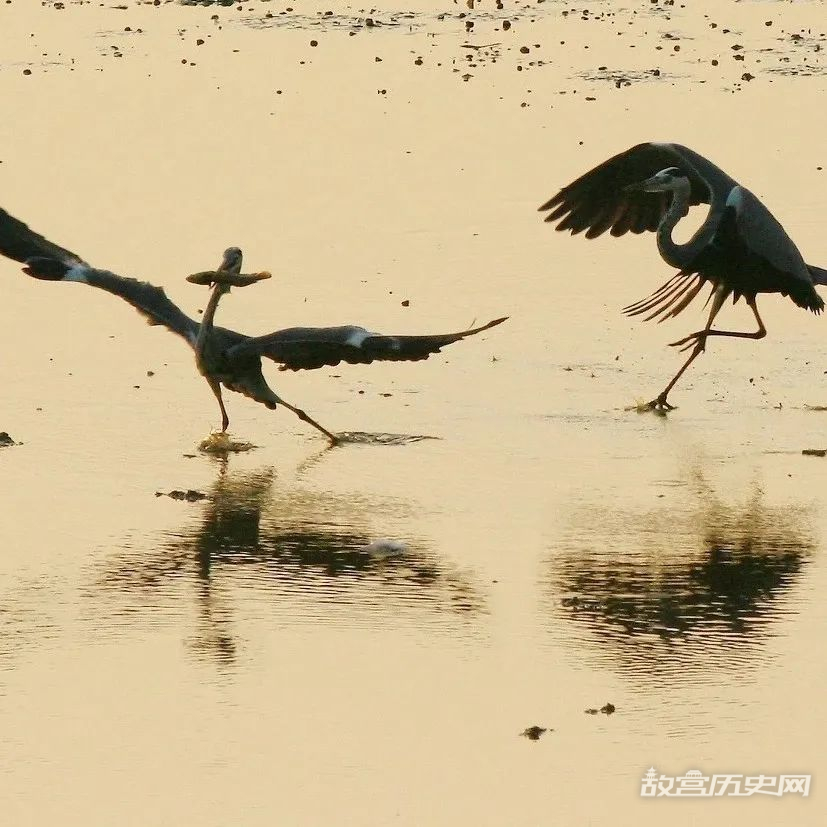 在永修县鄱阳湖大湖池湿地,两只苍鹭剑拔弩张,争夺食物。图/图虫·创意