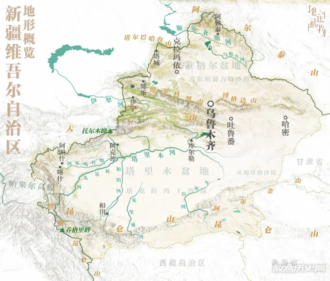 新疆维吾尔自治区地形概况。乌鲁木齐,坐落在天山脚下。制图/Paprika