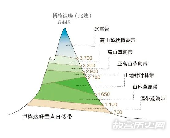 博格达峰垂直自然带示意图。图/《多彩中国》