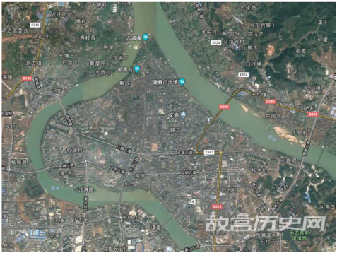 从卫星地图来看,赣州城东西北三面临水,周围有环山,中间是凹陷的盆地。