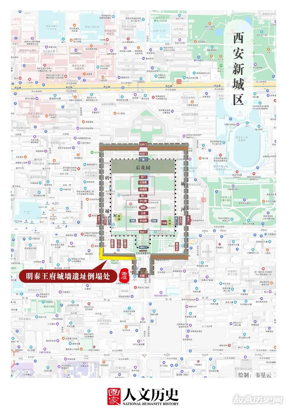 清末民初,明秦王府旧址被称作“王城”或“皇城”,今日西安“皇城东路”“皇城西路”等地名即由此而来。