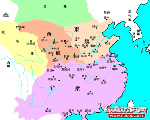北魏内乱,分裂为东魏和西魏。
