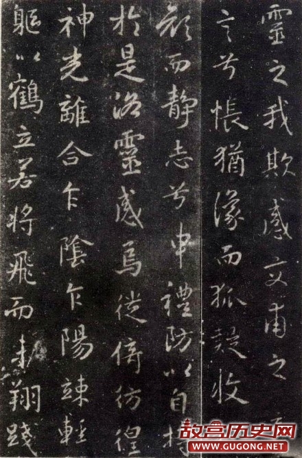 于是越北沚,过南冈,纡素领,回清阳,动朱唇以徐言,陈交接之大纲。恨人神之道殊兮,怨盛年之莫当。抗罗袂以掩涕兮,泪流襟之浪浪。悼良会之永绝兮。哀一逝而异乡。无微情以效爱兮,献江南之明珰。虽潜处于太阳,长寄心于君王。忽不悟其所舍,怅神宵而蔽光。于是背下陵高,足往神留,遗情想像,顾望怀愁。冀灵体之复形,御轻舟而上溯。浮长川而忘返,思绵绵督。夜耿耿而不寐,沾繁霜而至曙。命仆夫而就驾,吾将归乎东路。揽騑辔以抗策,怅盘桓而不能去。