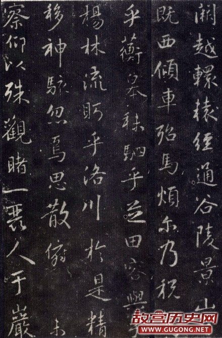 余从京域,言归东藩。背伊阙,越轘辕,经通谷,陵景山。日既西倾,车殆马烦。尔乃税驾乎蘅皋,秣驷乎芝田,容与乎阳林,流眄乎洛川。于是精移神骇,忽焉思散。俯则末察,仰以殊观,睹一丽人,于岩之畔。乃援御者而告之曰:“尔有觌于彼者乎?彼何人斯?若此之艳也!”御者对曰:“臣闻河洛之神,名曰宓妃。然则君王所见,无乃日乎?其状若何?臣愿闻之。”