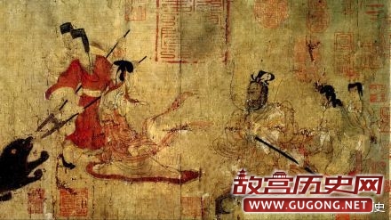 顾恺之《女史箴图》,作品注重人物神态的表现,用笔细劲联绵,色彩典丽、秀润。原作已失,现存唐代摹本,原有12段,现仅剩9段。最早收藏在圆明园,1860年“火烧圆明园”后被掠夺并流失海外,现收藏于大英博物馆。