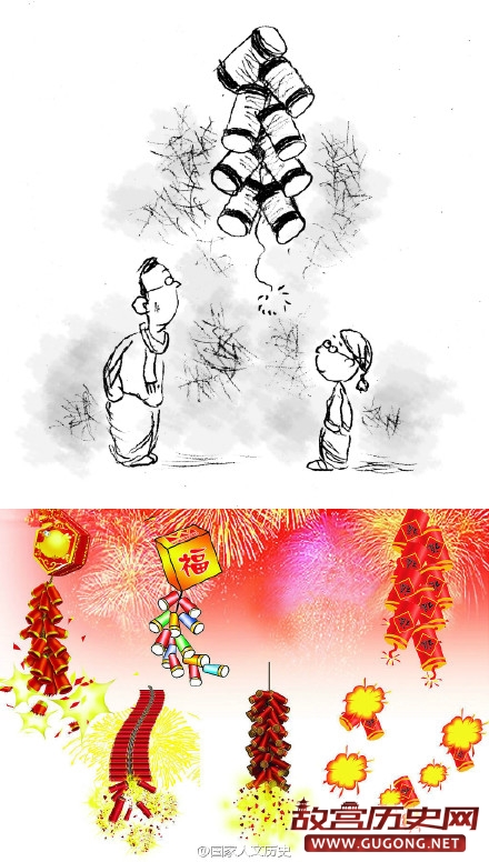 放爆竹源于汉魏时期,《荆楚岁时记》载:“正月一日鸡鸣而起,先于庭前爆竹以辟山臊恶鬼。”据说古时,住在山区的人,常得寒热病(可能是今天的疟疾)。当时被认为是恶鬼作怪,于是为了一年平安无事,便在农历元旦时就用火燃烧竹子,发出巨大响声,把山鬼驱走,因最初的爆仗是烧竹子,故称“爆竹”。