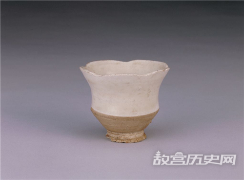 白釉葵瓣口杯,高6.2厘米,口径7.5厘米,足径3.4厘米。