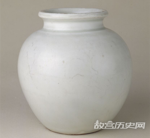 罐口微撇,短颈,圆腹,腹以下渐收,平底。底无釉。胎、釉洁白细腻。