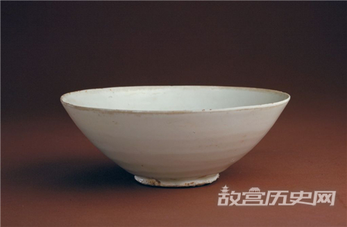 故宫馆藏,定窑白釉“官”字款碗,五代,高6.6厘米,口径17厘米,足径6厘米。