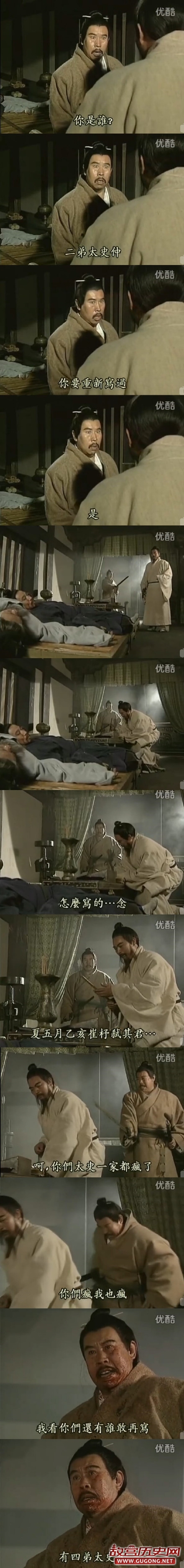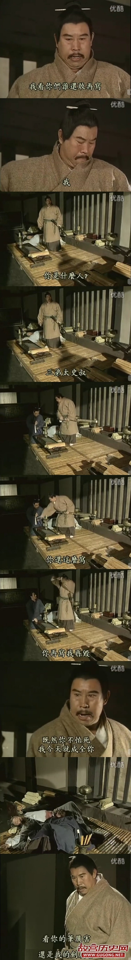 春秋时期齐国大臣崔杼杀死国君齐庒公,史官据实记载“崔杼弑其君”,崔杼就杀了他,他的弟弟也如实记载,崔又把他弟弟也给杀了,一直到他的四弟也据实记载,崔杼实在无可奈何,只好作罢。另一史官听说崔杼一连杀了三个史官,仍把写有“崔杼弑其君”的竹简拿来。看到崔没再杀人就回去了。