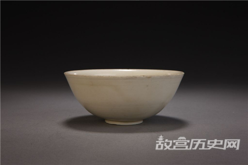 碗敞口微撇,深弧壁,圈足。通体施白釉,釉色白中闪黄,外壁釉面有垂釉痕,足墙切削齐整。外壁光素,内饰刻划萱草纹,纹饰线条洒脱流畅。