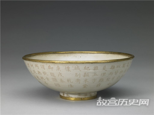 故宫馆藏,定窑白釉刻乾隆御制诗碗,北宋,高6.1厘米,口径16厘米,足径5.4厘米。