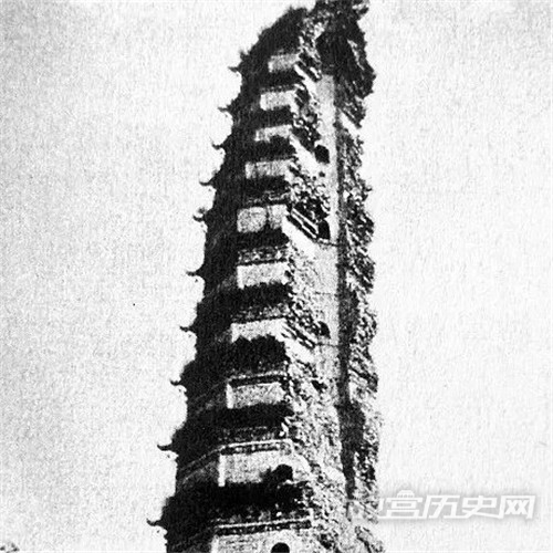 明代的隆庆年间法门寺倒了以后,法门住持的僧人准备用自己的力量集资。他用苦刑的办法,就是用很重的两个铁锁挂在一百只长铁链上,然后穿透锁骨、拖地而行到各地化缘。大家看到这样的场面就觉得他是真心要修宝塔,都纷纷捐钱。但是钱还是有限的,所以到明代万历7年才开始修建13级的砖塔(后来也倒塌了),一直修到万历37年,整个修了30年。