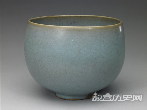 故宫馆藏,钧窑天蓝釉钵,北宋—金,高14.6厘米,口径17.9厘米,底径7.9厘米。