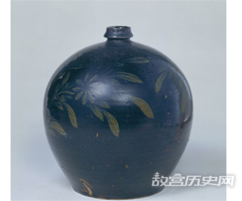 故宫馆藏,黑釉褐彩花卉纹小口瓶,金,高22厘米,口径3.5厘米,足径13.5厘米。