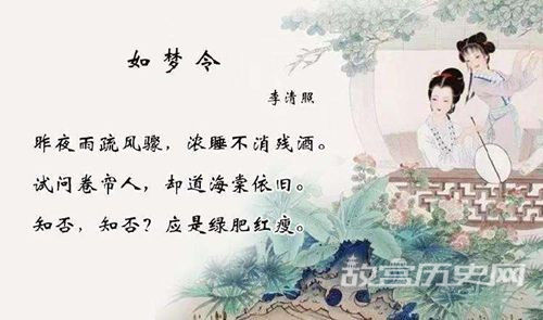 昨夜雨疏风骤,浓睡不消残酒。试问卷帘人,却道海棠依旧。知否,知否?应是绿肥红瘦。