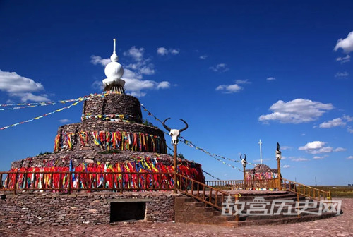 第二年将驼羔的母亲或已二岁的驼羔带上,沿着大致的方向和路线去寻找。如果发现母驼或驼羔在某一处不肯前行或悲鸣,那就是安葬亲人的地点。这时,牧人要垒几块石头或拜几把土,来祭礼亲人,求得亲人的祝福。如此沿袭,祖祖辈辈,世世代代,形成了敖包。同时,祭敖包的形式内容也随着时代的发展不断演变,形成了今天的“祭敖包会”。