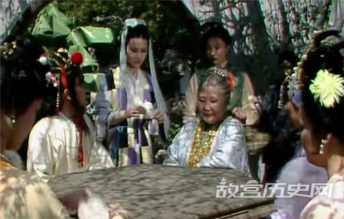 贾母:“我不吃六安茶。”妙玉:“知道。这是老君眉。”贾母又问这是什么水。妙玉笑回“是旧年蠲(juān)的雨水。”