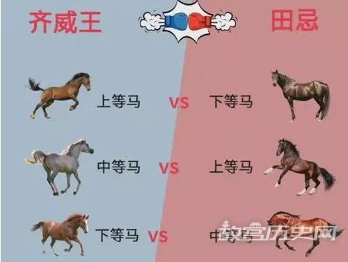 孙膑说:“将军与大王的马我看了。其实,将军的三等马匹与大王的都差那么一点儿。您第一局派出的是上等马与大王的上等马赛,第二局派中等马与大王的中等马赛,第三局派下等马与大王的下等马赛。您这样总按常规派出马与大王的马比赛,您永远会输。”田忌不解地问:“不这样,又怎么办呢?” 孙膑对田忌说:“下次赛马时,您照我说的办法派出马匹,一定会取胜的,您只管多下赌注就是了。”田忌听了,大喜。这次他主动与齐威王相约,择日再进行赛马。齐威王听了,不屑地说:“田将军又想给寡人送银子了,再比,将军也是输。”