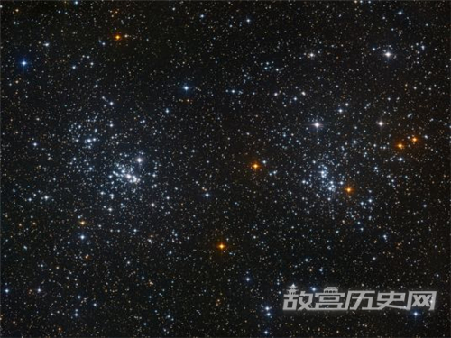 M34疏散星团,距离地球约1400光年,用双筒镜或小型望远镜可见,大小和满月差不多,星团中最亮的恒星为7等。NGC869和NGC884(英仙座η和χ双重星团)位于英仙座中,是两个疏散星团,肉眼可见,用双筒镜或小型望远镜能看得很清楚,两者均和满月差不多大小。