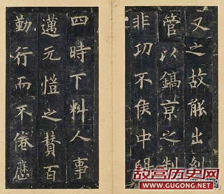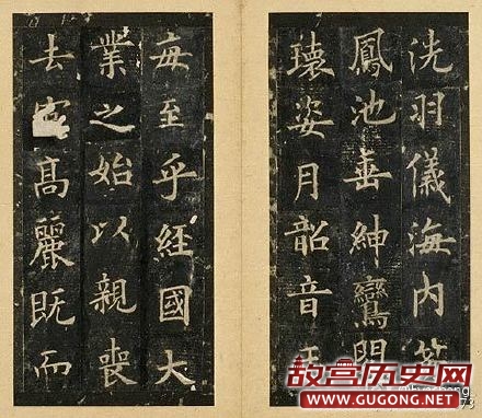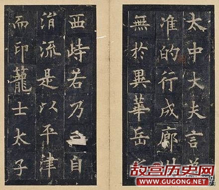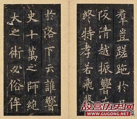 《虞恭公温彦博碑》,岑文本撰,欧阳询书,唐刻,北京故宫博物院藏宋拓本,黑墨精拓,剪裱装册,共23页。前有汪瀚云等题签,后有陈镛等题跋以及“公彦珍秘”等钤印8方。为“蔼蔼高门”之“高”字未损本。此碑为陕西醴泉唐太宗昭陵陪葬碑之一。此碑书法艺术价值极高,历代书家对此碑给以极高的称赞。